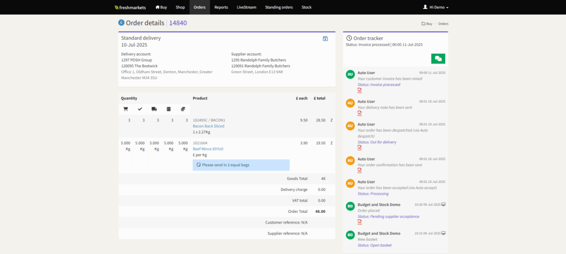 Multiple suppliers, endless paperwork, and fragmented communications slow everything down. Freshmarkets consolidates all supplier information, orders, and invoices in one place, drastically reducing admin time and error rates.